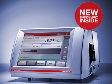 濃縮型 - DMA4500M C 擁有超過 140 個內(nèi)置換算表,涉及鹽、酸、堿、酒精、糖等等??呻S時添加單獨(dú)表格。實驗室人員只需短期培訓(xùn)即可操作濃度計。僅需 2 毫升的樣品量且無需更多耗材。測量僅耗時 30 秒。