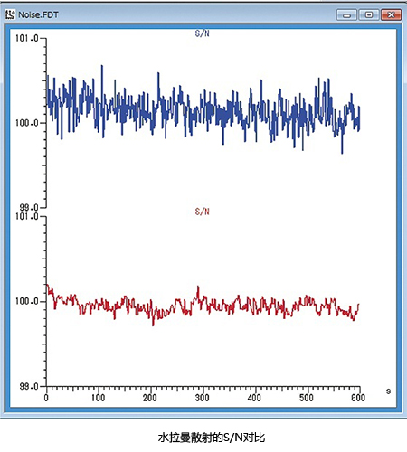 通過與前代機型的水拉曼散射S/N對比,F(xiàn)-4700靈敏度是前代機型的2倍,即使是微弱的信號,也能實現(xiàn)低噪聲檢測。