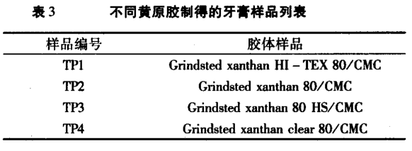 不同黃原膠制得的牙膏樣品編號(hào)見表 3。