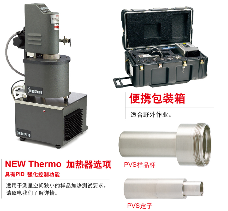 可選附件:①粘度標(biāo)準(zhǔn)液 ②可選購的定子(bobs)③電腦 ④恒溫水浴 ⑤Thermo加熱器