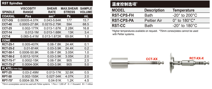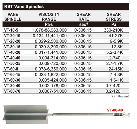 AMETEK Brookfield RST流變儀可以提供同軸圓柱、錐/板、板/板或者槳式等測量體系。下表給出了每個體系的測量參數(shù),供參考