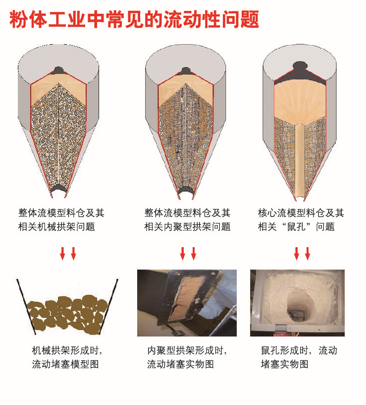 粉體在整個(gè)流程工藝中會(huì)遇到許多影響流動(dòng)性的因素,如儲(chǔ)存、運(yùn)輸及在筒倉中受到的外力影響;流出料槽時(shí)在底部漏口形成的拱架結(jié)構(gòu);核心流動(dòng)型容器,先進(jìn)后出流出方法帶來的“鼠孔”問題一周邊阻塞中間流動(dòng);在擠岀或管流中遇到的流動(dòng)不暢等。AMETEK BROOKFIELD現(xiàn)代的粉體測試方法可以針對不同的問題,對每種工藝情況進(jìn)行流動(dòng)性評估以確保粉體在整個(gè)流程中不會(huì)遇到阻塞問題