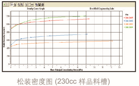 。通常而言,自由流動(dòng)粉體在固結(jié)壓力增加時(shí)會(huì)顯示密度的變化相對很小,而粘結(jié)性粉體的密度則有很大改變。