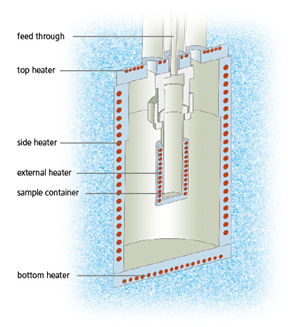 在管狀或球形容器中放置若干毫升的樣品。容器由完整的框架加熱系統(tǒng)所圍繞。在大多數(shù)測量模式下,框架加熱系統(tǒng)的溫度控制在與樣品溫度相同。此時(shí)在外圍加熱器與樣品之間沒有溫差,樣品釋放的所有熱量將停留在樣品內(nèi)部(即模擬絕熱環(huán)境)。
