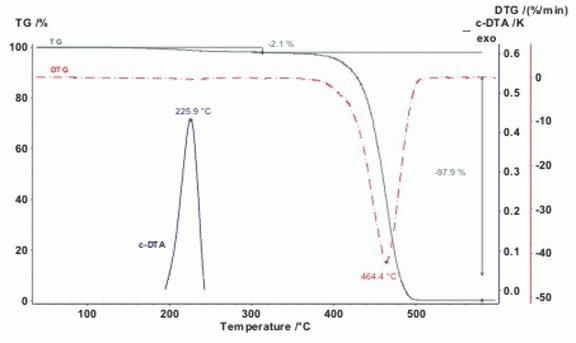 可選的 c-DTA®功能不僅適用于儀器的溫度校正,而且在熱重測(cè)量的同時(shí)提供了關(guān)于樣品熱效應(yīng)(包括帶質(zhì)量變化的揮發(fā)、分解與不帶質(zhì)量變化的熔融、玻璃化轉(zhuǎn)變等)的重要信息。