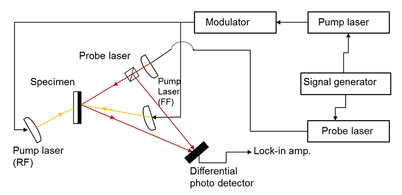 除了 RF 方法之外,測量也可以使用前部加熱/前部探測(FF)的結(jié)構(gòu)進(jìn)行。“Front”一詞這里指的是沉積于基體上的薄膜的外表面,而“Rear”一詞指的是薄膜與基體接觸的一面。