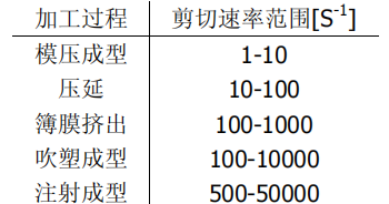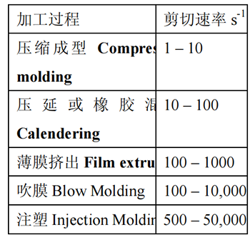 表 1 聚合物加工過(guò)程典型的剪切速率范圍