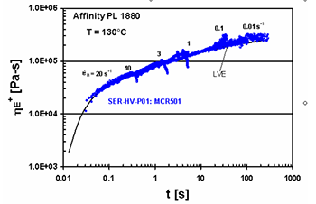 聚合物熔體的零剪切粘度可以用不同的方法來(lái)測(cè)量,例如:流動(dòng)曲線,蠕變,頻率掃描和應(yīng)用松弛。所有的測(cè)試均采用一臺(tái)配備電子整流同步馬達(dá)的旋轉(zhuǎn)流變儀,該儀器可以進(jìn)行控制應(yīng)力和控制應(yīng)變測(cè)試。