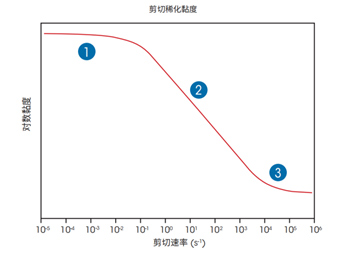 2 隨著剪切速率的增加,黏度會(huì)降低。此時(shí),無(wú)論是從罐中傾倒、通過(guò)管道泵送還是從包裝中擠壓,均可方便地進(jìn)行分配。
