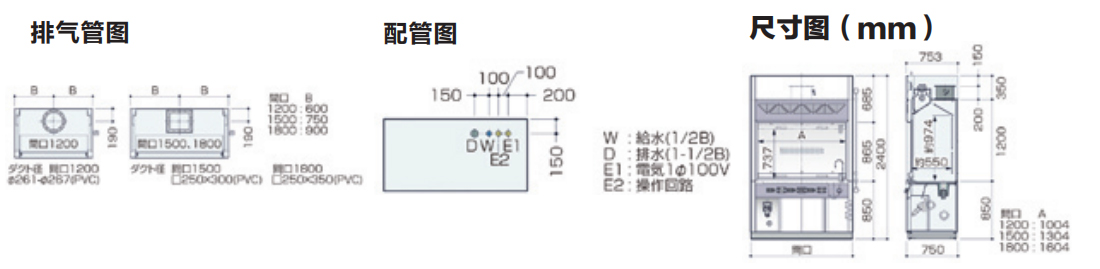 三相動力回路(僅操作回路在通風(fēng)柜上): 耐壓防爆型操作開關(guān) d2G4 耐壓防爆型指示燈 d2G4 接線盒 d2G4 單相回路: 耐壓防爆型熒光燈 Exdes Ⅱ CT5 耐壓防爆型撥動式開關(guān) d2G4 耐壓防爆型插座 d2G4 接線盒 d2G4 |